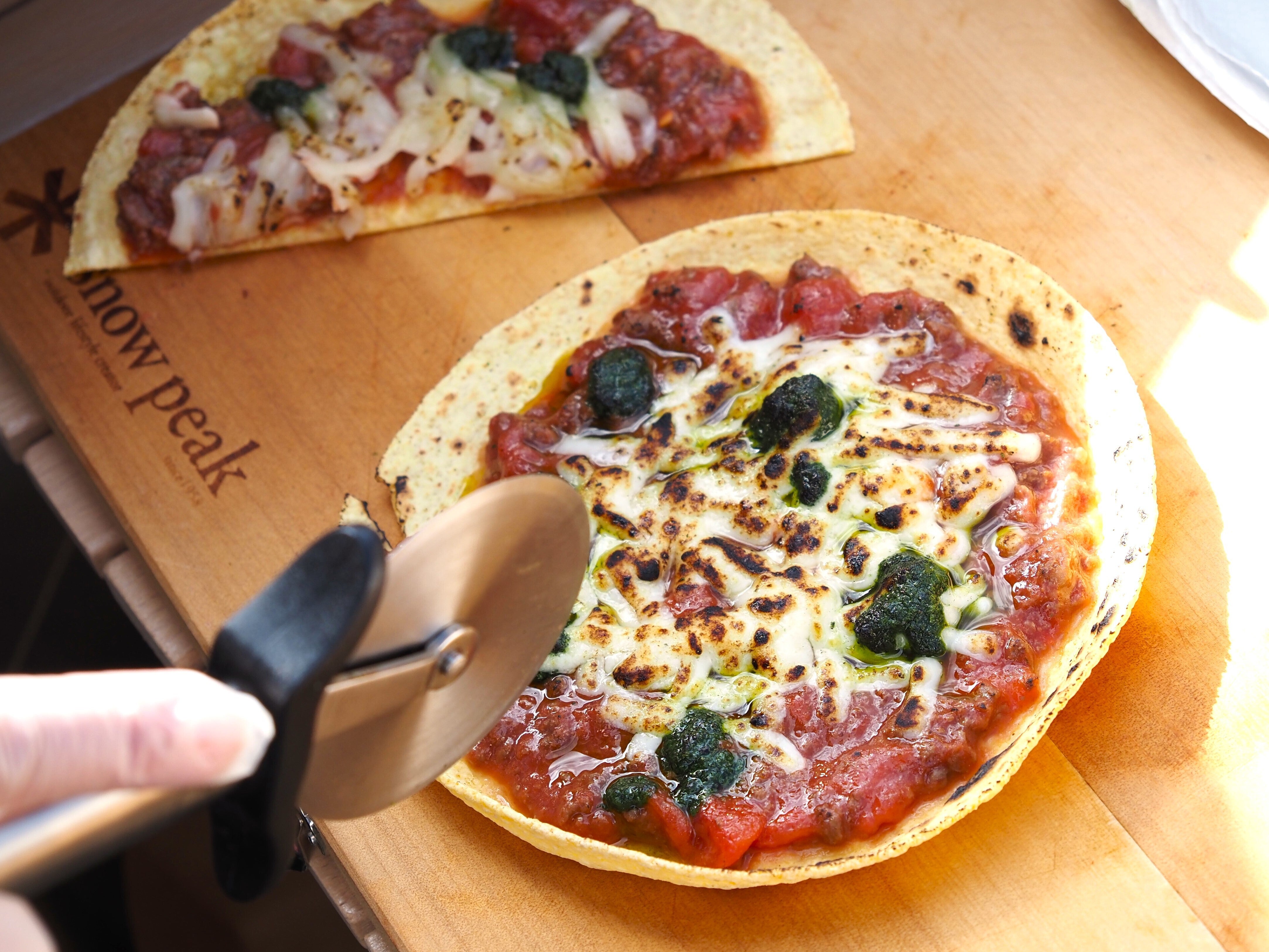 自然の中で食べる手作りピザは格別の味わいです。