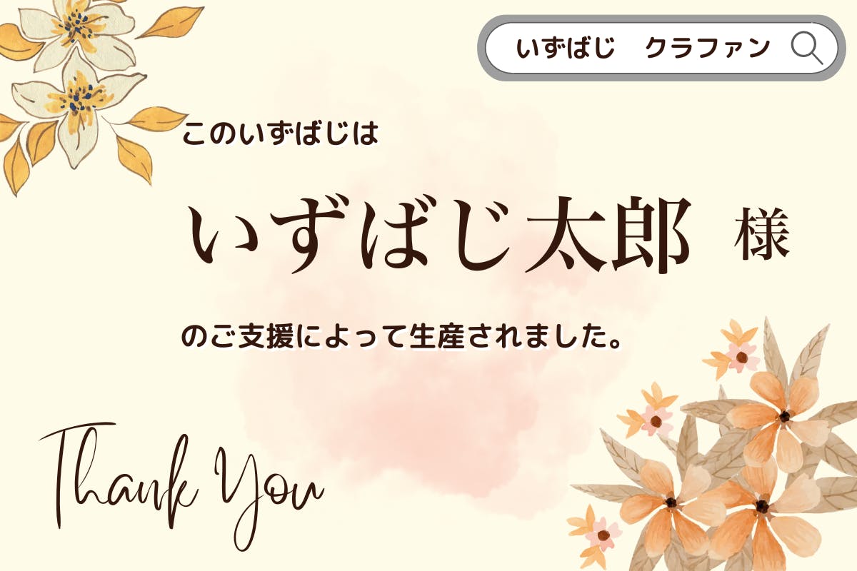 ※匿名や法人名も可です。メールでご連絡いたしますので、ご希望の名前をお伝えください。