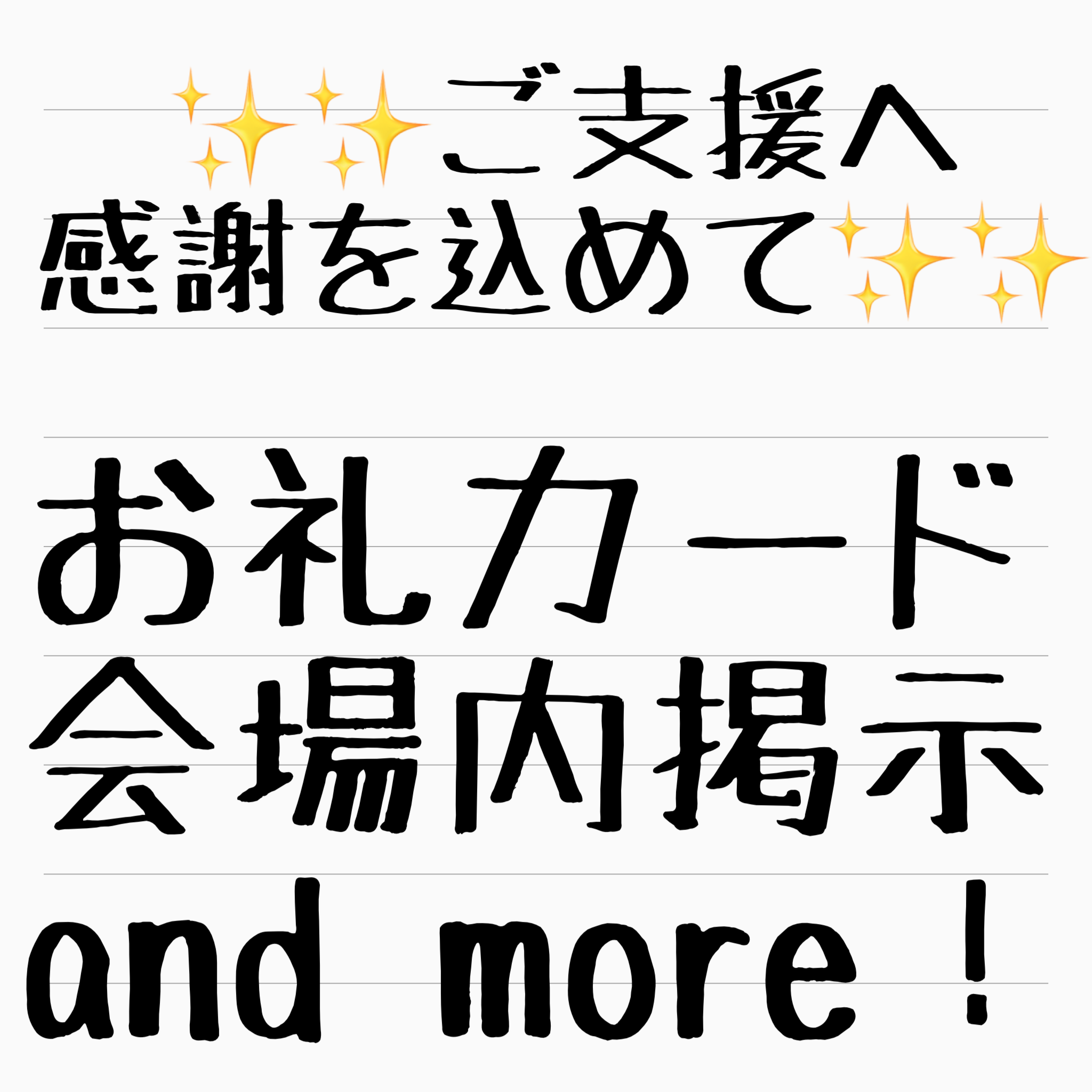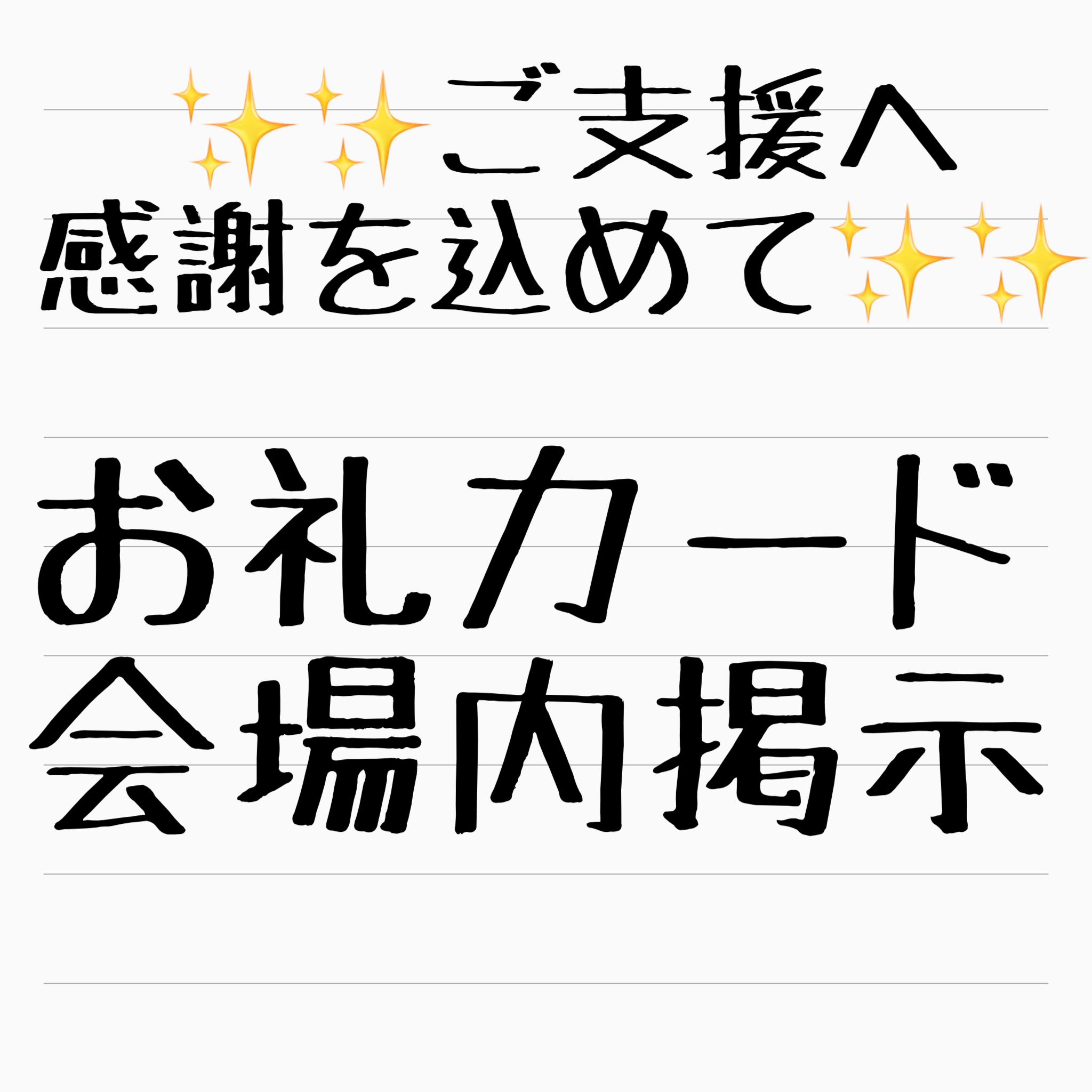 お礼の気持ちをぱんぱんにつめこんだお名前入りお礼カード(A4サイズ予定)を 会場内に掲示させていただきます。