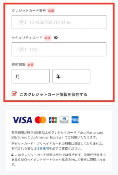 6-3.クレジットカード情報を入力する(6-2でクレジットカードを選んだ場合)