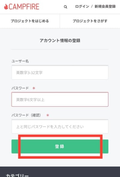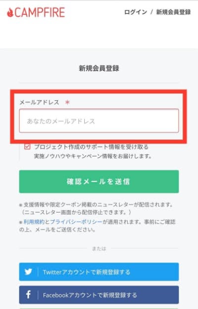 下記の2.~5→ 「CAMPFIRE」※に新規会員登録する