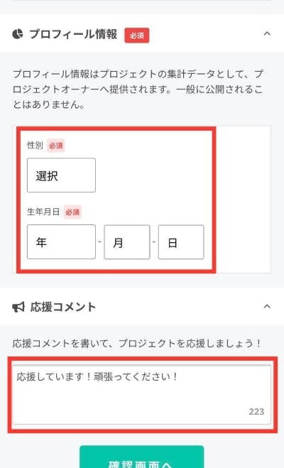 6-5.プロフィール情報・応援コメントを入力する
