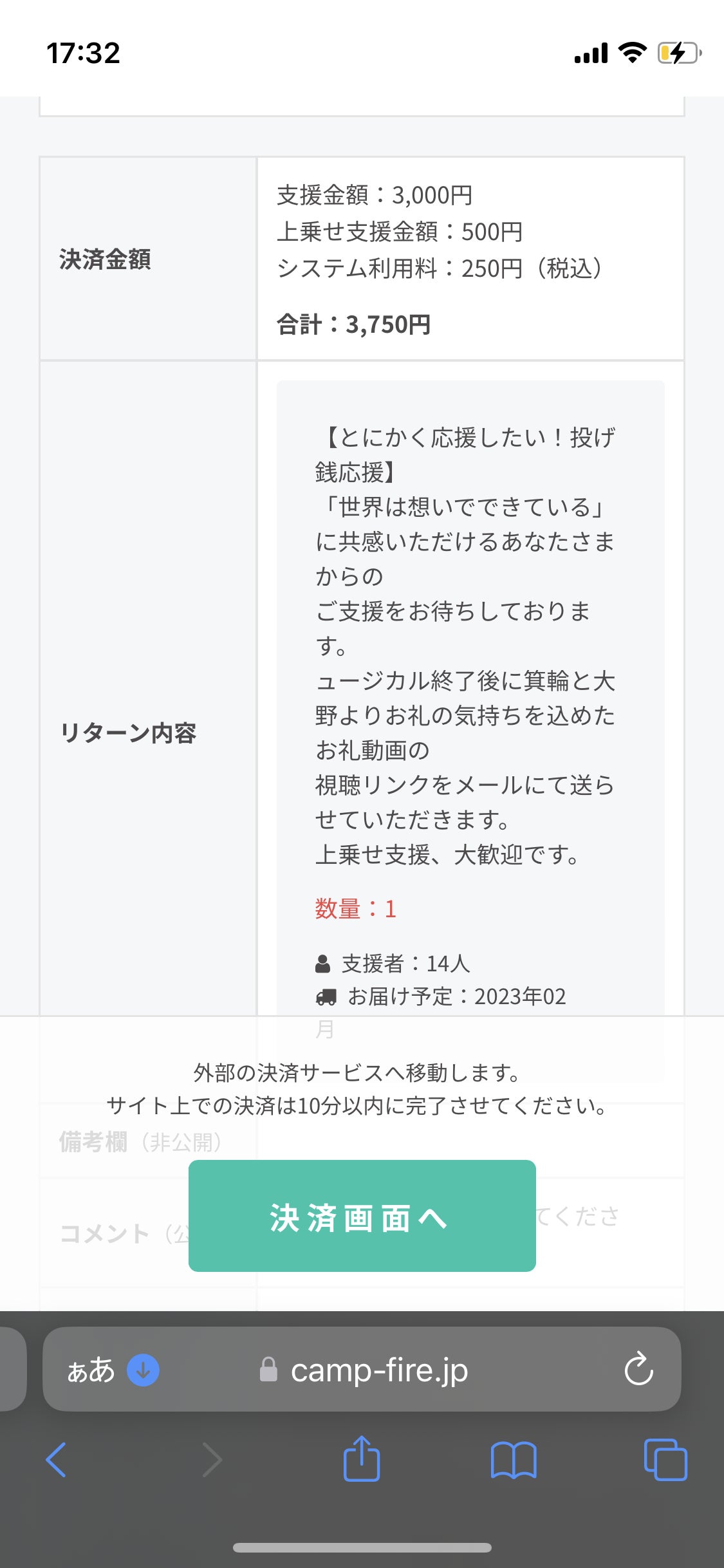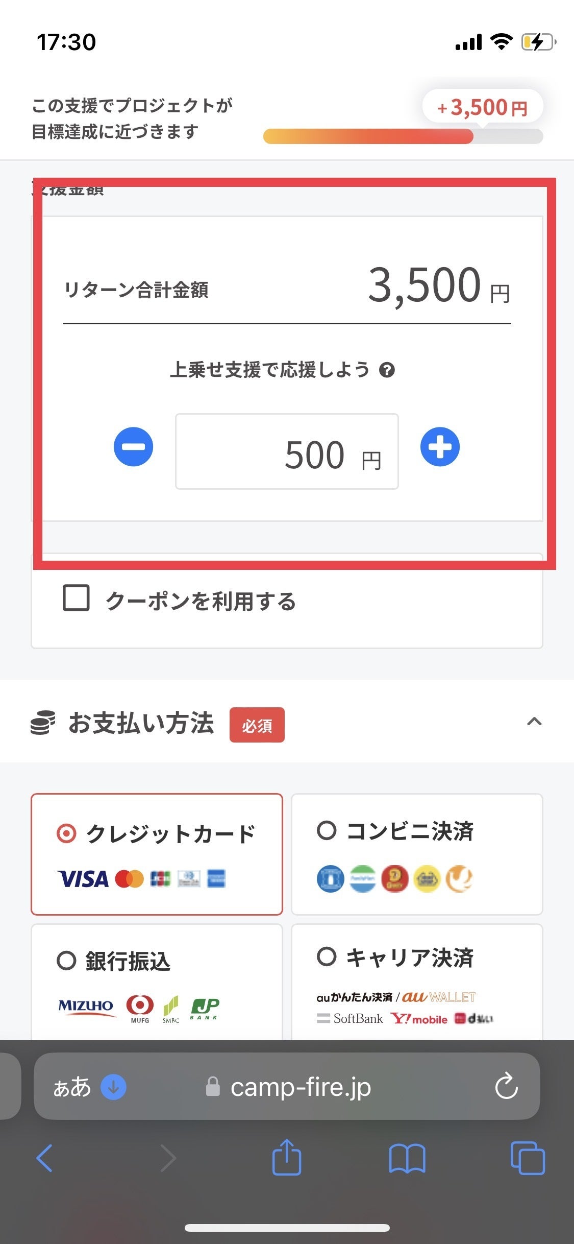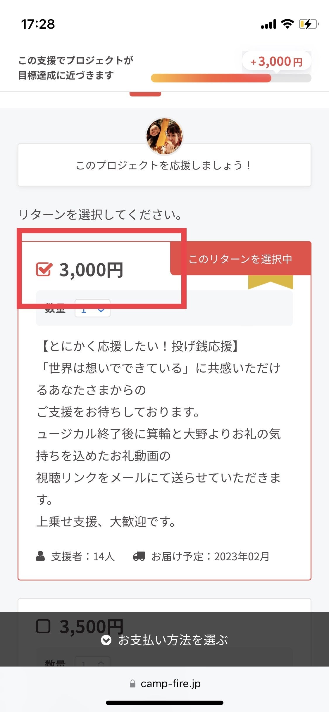 ①選んだリターンの合計金額を確認