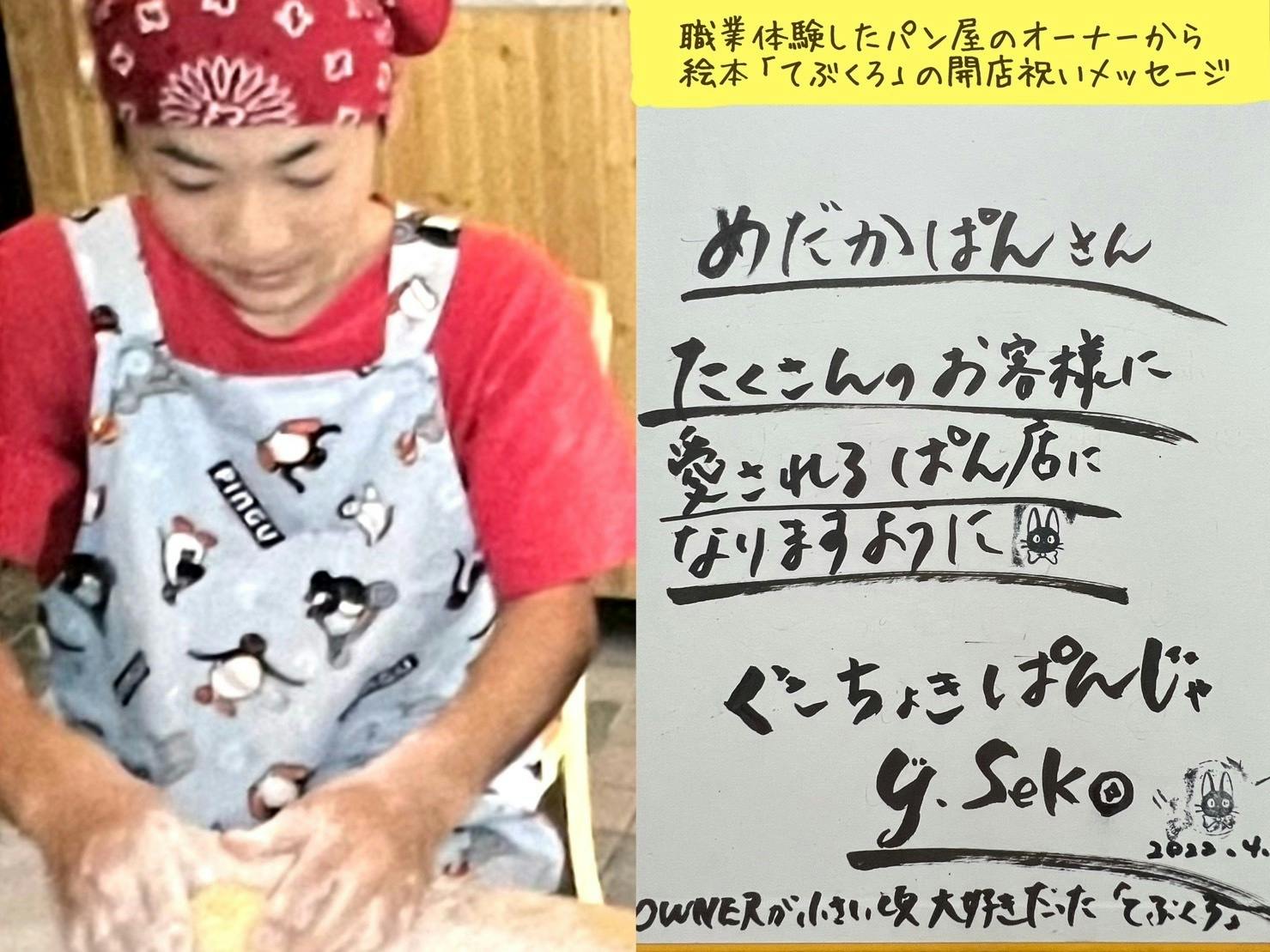 店主は、中学時代の職業体験でパン製造を体験して以来、パンの魅力に取り憑かれ、家の家庭用オーブンでパンを焼いては一人で食べて試行錯誤を繰り返していました。その後大学時代のアルバイトから本格的にパン製造を学び、今年4月に夢だったパン屋開業を実現しました。職業体験したパン屋「ぐーちょきぱんじゃ」は店主が幼少期から通っていたお店で、めだかぱんの開店を喜んでくださっています。