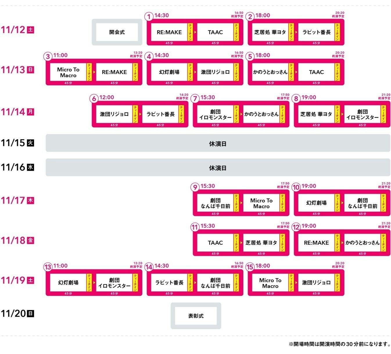 参加劇団:かのうとおっさん / 劇団イロモンスター / 劇団なんば千日前 / 激団リジョロ