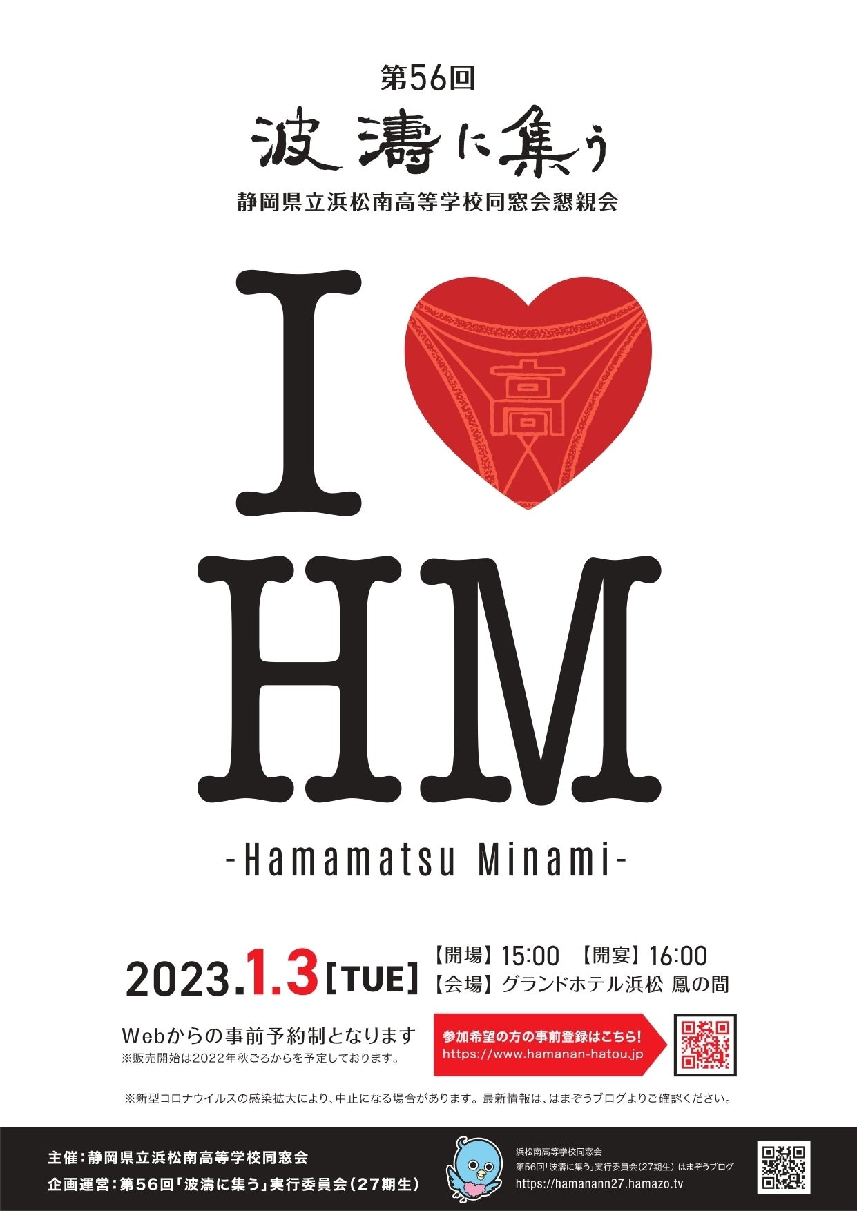 2023年1月3日(火)16:00~ 開演 静岡県立浜松南高等学校同窓会 第56回「波濤に集う」実施
