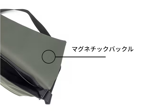 マグネットデザイン。余計なファスナーがなくなり、バッグから物がこぼれるのも防げることができます。