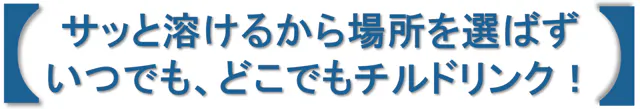 責任感の強いあなた。ついつい考え込んでしまうあなた。お酒を飲みたくなるあなた。仕事終わり嫌な気分を引きずりたくない時は【お気に入りの飲み物】にサッと一袋!どんな飲み物もあっという間にチルドリンクに!