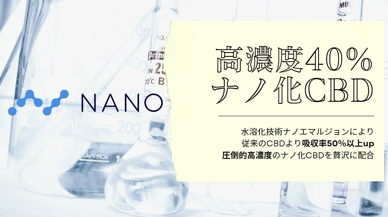 【魔法のCBDパウダー】はナノ化技術【ナノエマルジョン】を使い、従来の油にしか溶けなかった脂溶性CBDを水に溶ける水溶性に変え、生体吸収率をより高めた製品です。