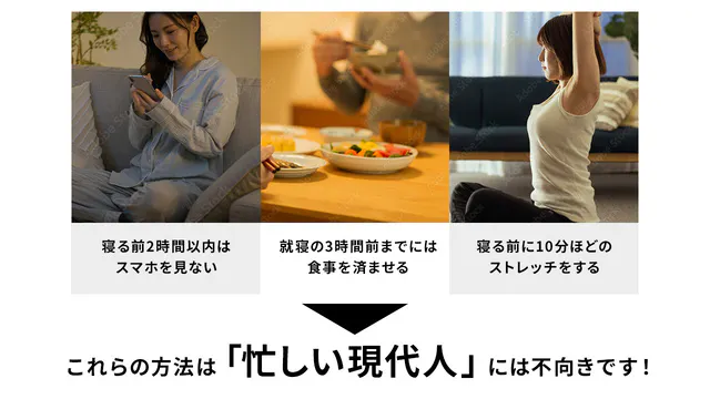 日々の生活は質の良い睡眠を心がけてください。弊社のオウンドメディア「睡眠専科」を参考にしてください。