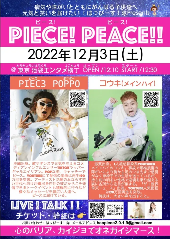 障がいの有無関係なく、ピースな1日を実現し、これからの活動継続へと繋げて行きたいです。