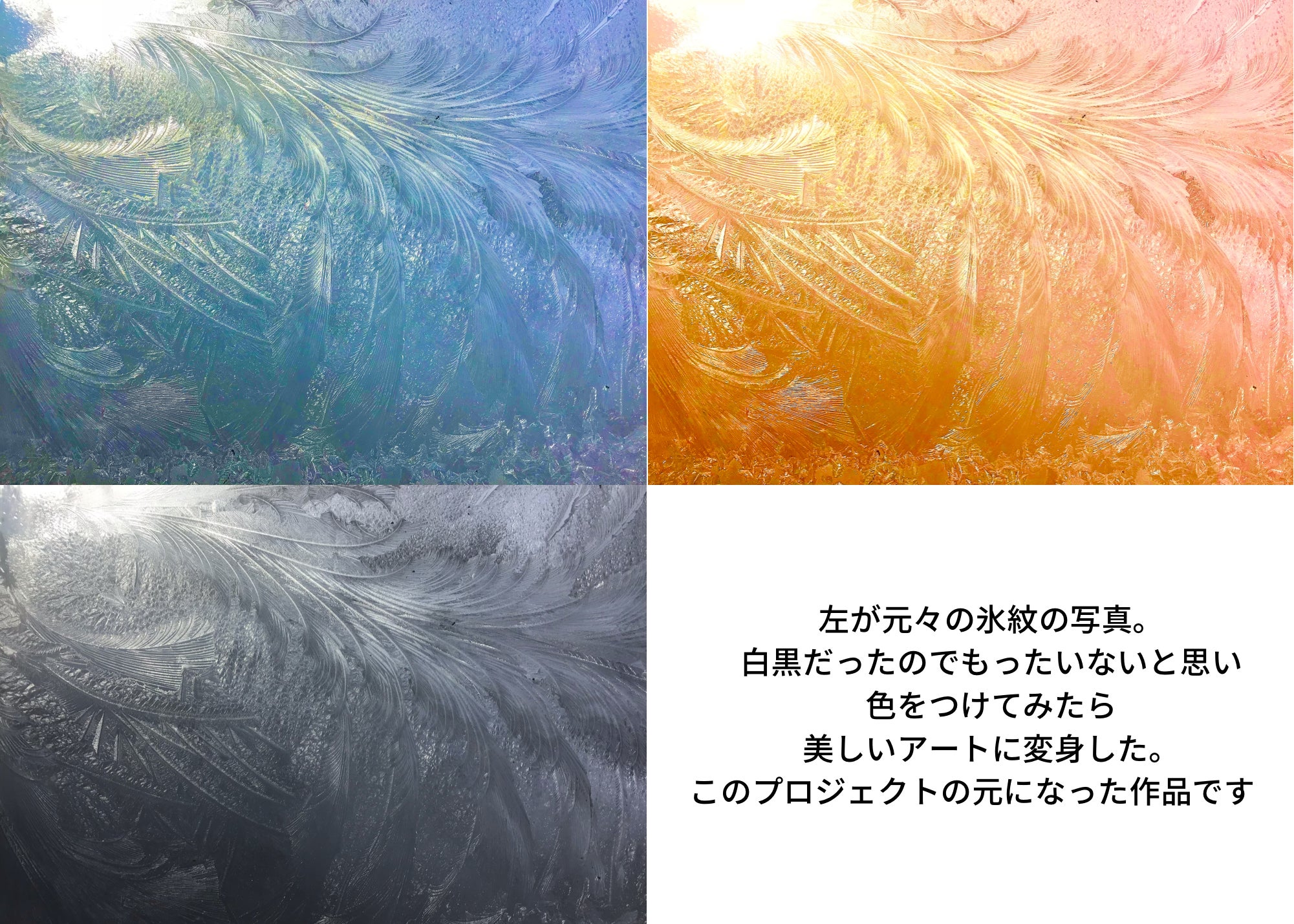 美しい氷紋写真はストックが沢山あり、続々アート作品にして皆様に楽しんでいただきたい