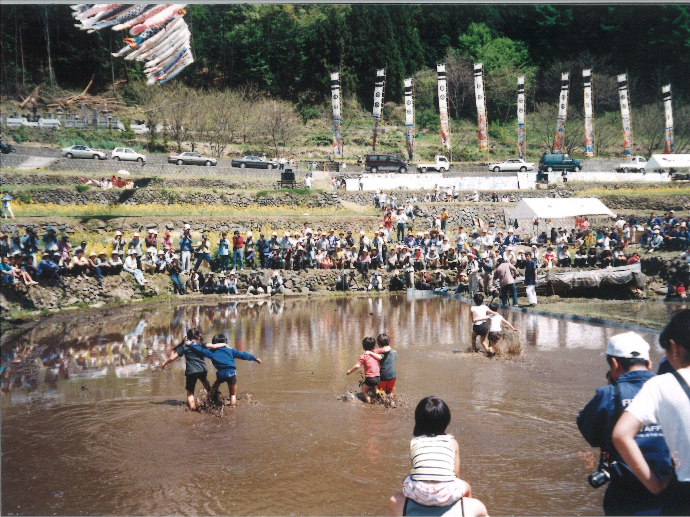 毎年5月5日こどもの日に棚田を利用した「泥んこカヌーレース」、「鯉のつかみ取り」等から構成されるお祭りを開催していました。(ここ数年はコロナ禍による影響で未開催)