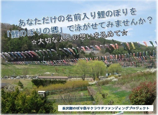 ・「ご希望の、お名前を入れた鯉のぼりを長沢の空に泳がせます」