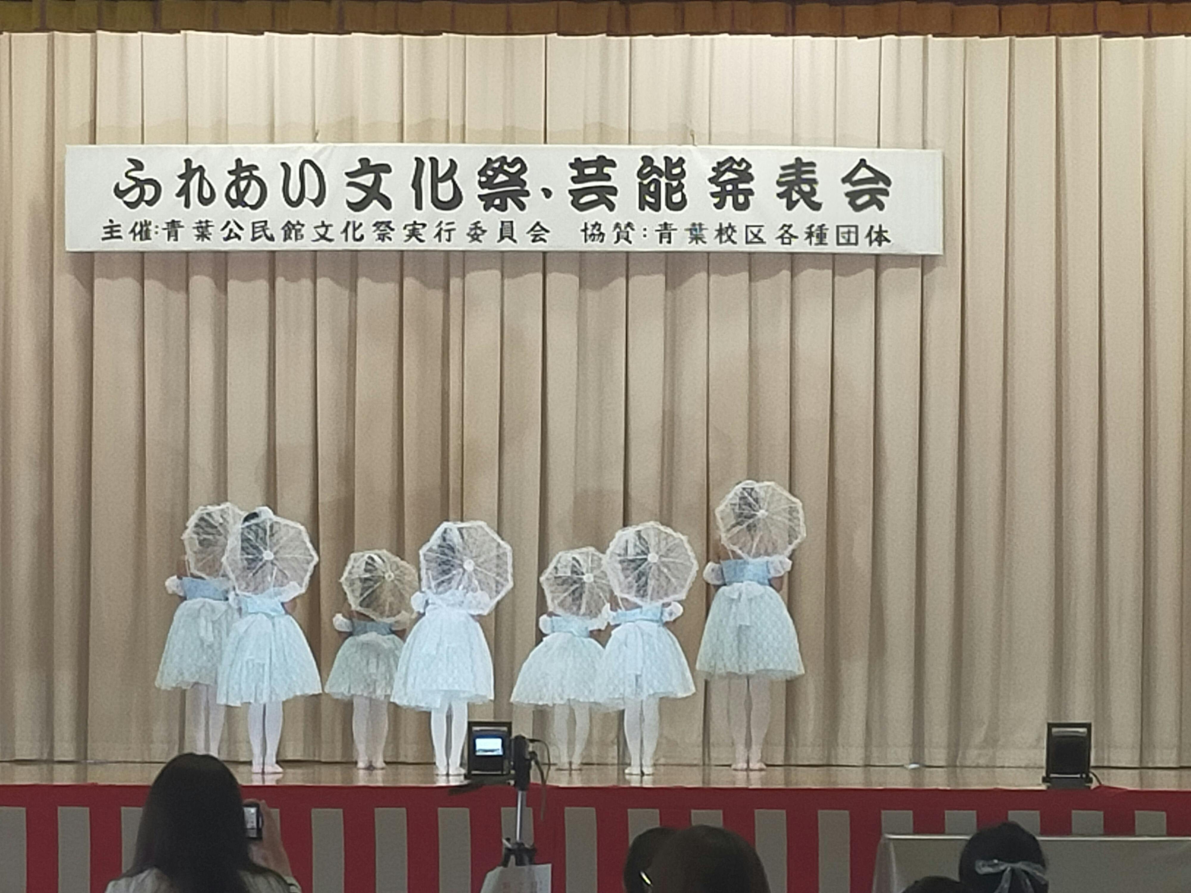 小学校の体育館舞台で踊りました(*^^*)ちょっと狭くて踊りにくそうなところもありましたが、がんばりました♡