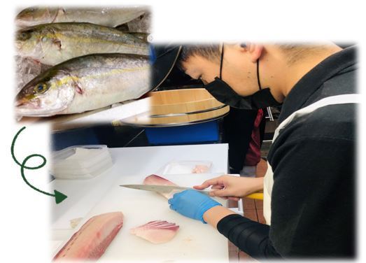 ↓切り付けの様子【ネタは、南伊勢から仕入れたこだわりの天然ハマチ】