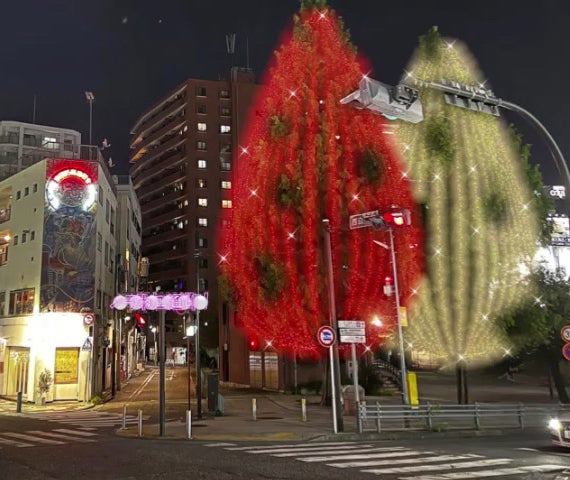野毛側からのまちの入り口に大きな木が2本立ち並んでいます。メタセコイヤという世界でも有数の大高木です。この大高木にイルミネーションを点灯し、巨大なクリスマスツリーとして見立て、吉田町を訪れる人々に楽しんでいただきたいと考えています。また、地域住民への癒し、飲食店への応援など多くの思いを込めて、高さ20mほどあるこの高木を光り輝かせ、まちを明るく照らし、活力に繋げられたらと強く願います。