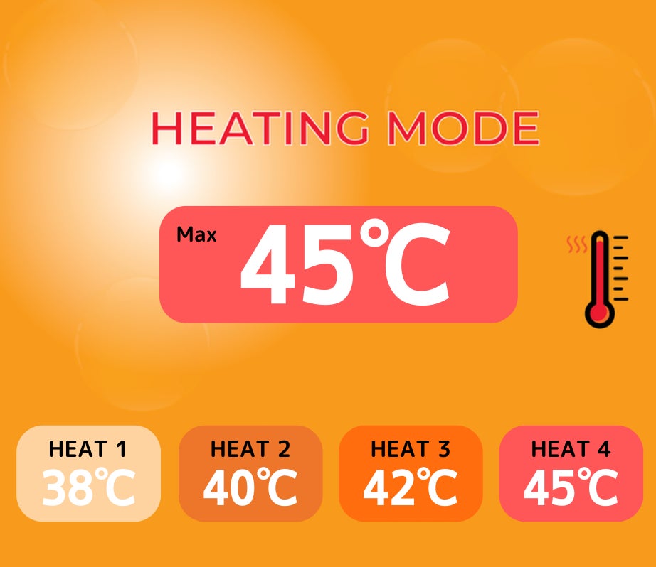 温熱モードでは38°C〜45°Cの温度を4段階で調整可能。