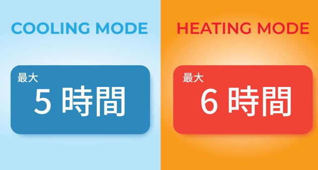 【温熱モード】H1(38℃):約6時間/ H2(40℃):約5時間/ H3(42℃):約4.5時間/ H4(45℃):約3.5時間