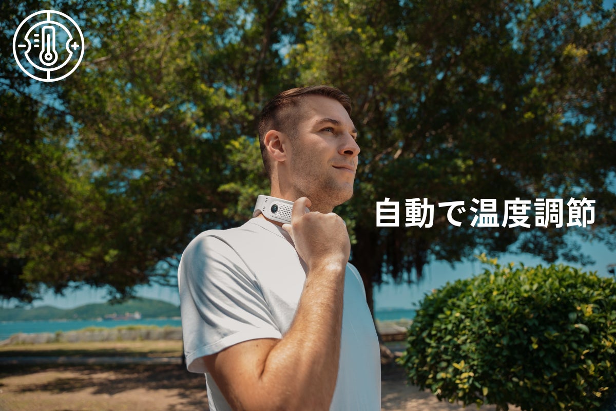 冷却プレートの最低温は約15℃。暑い日差しのなかでも首に冷たい飲み物を当てたような涼しさが感じられます。