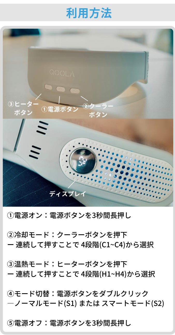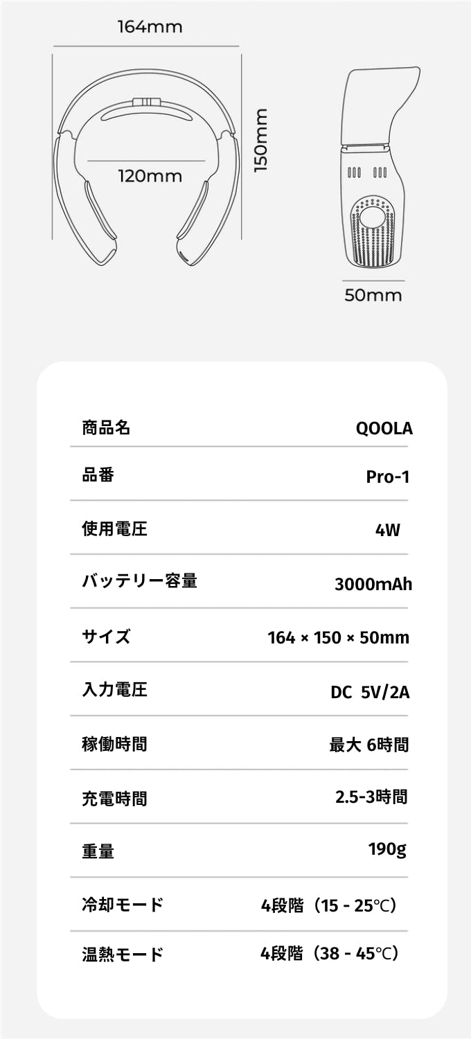 また内部の温度を早く正確に伝えるため、QOOLAは熱伝導率と反射率の高い高級ステンレスプレートを採用。タービンにより加熱および冷却された温度が首元のステンレスプレートに素早く伝わることにより、快適な使用感を実現しています。