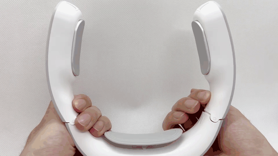 QOOLAは頚椎の曲線に合わせた形状。さらに角度調整が可能な柔軟なフレームを採用しているため、首の太さや体型に関係なく幅広い人にフィットします。