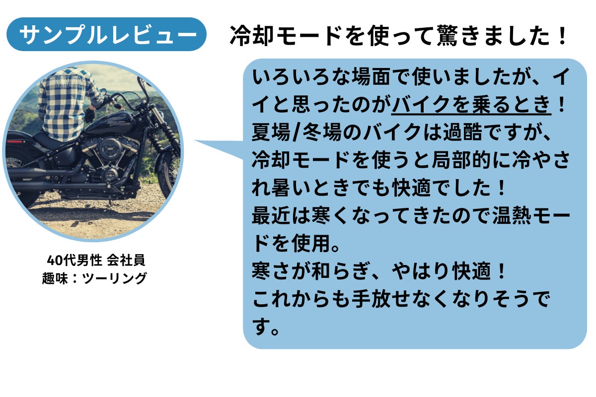 そのため長時間使用でも体を冷やしすぎたり温めすぎたりせず、余分な稼働のバッテリーを消耗を抑えることができます。