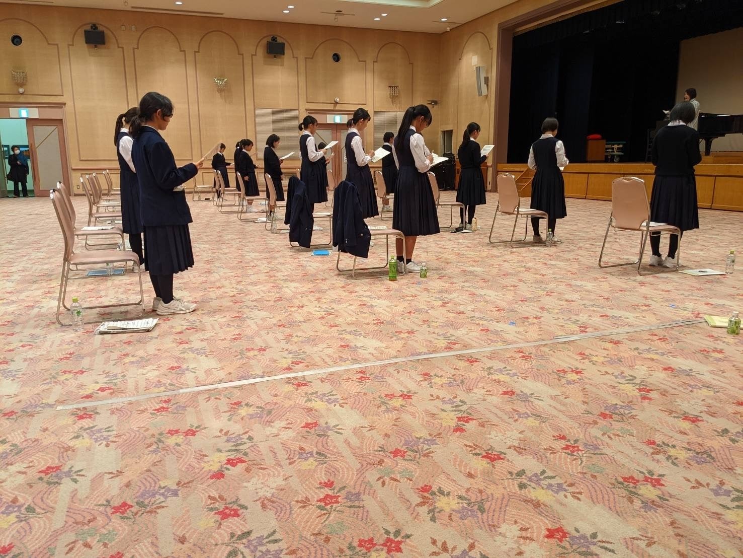2022/10/30 18:57雨上がりの空に今朝も虹がかかる青森。何か素敵な事が起こりそうな予感。同声合唱の部トップバッターで帯山中学校登場!!!「その木々は緑」「聞けよ、ひばり」2曲を堂々と歌唱できました♪歌い終えた部員たちの表情は皆晴れやかで清々しく。青森で充実した時間を過ごせたのでしょう。ご支援いただいたすべての皆さまへ、感謝の歌声を響かせることができました。本当に感謝感謝です!いよいよ表彰式が始まりました!見守りたいと思います! もっと見る♪いざ本番へ!!!