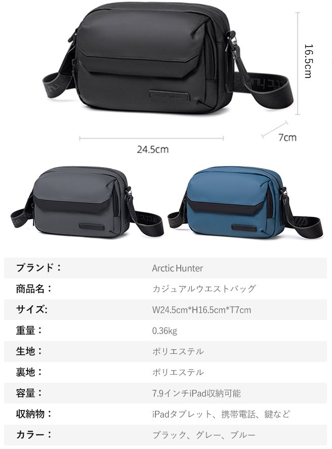Arctic hunterのカジュアルウエストバッグは、余計な装飾が一切ないクラシカルなデザインで、実用性と美しさ両方を兼ね備えています。