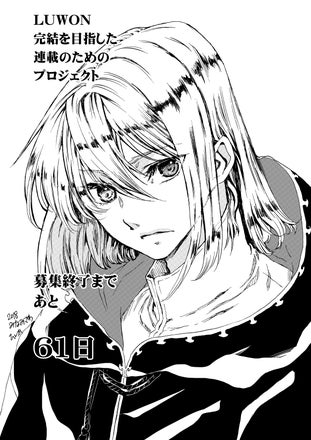 見出しにもありますが、一晩で11%達成です!ありがとうございます・・・! 続編を望む声がずっと続いてたので、もしかして、LUWON好きな人って熱い人が多いのかな?と思っていたのですが、想像以上に熱かった!!!嬉しい。 でも、無理なく!(大事)情報を拡散していただけるだけでもありがたいので!できる範囲で協力していただけたら嬉しいです。 もちろん、支援してくださった方々にはもう、手を合わせて拝む勢いです・・・!たった一晩でこんなに・・・ありがたい・・・。 LUWON連載時の思い出話など。 この話は、黒矢と同世代の少年少女の皆様に読んでほしいな、と思って描いてました。私が10代だったころに悩んでいたこと、苦しんでいたことに、一つの答えを出す・・・とまではいかなくとも、作中のキャラが同じようなことで悩み苦しむことで、救いにならないかな、と。 そんな感じだったので、内容が暗くて、打ち切りになってしまったわけですが(苦笑) 痛々しい場面も多い作品で、描いていて楽しかった、と言い切ってしまうと微妙かもなんですが、LUWONを描く事が、私自身の救いにもなっていました。 そんな作品です。 目標達成まで、そして募集の終了まで、長い道のりですが、よろしければお付き合いください。