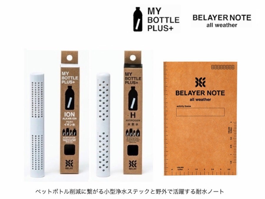 ◯BELAY base SET / 小型浄水ステック「MY BOTTLE PLUS+」2種と耐洗紙でできた野外で活躍するオールウェザーノート「BELAYER NOTE all weather」を大変お得にお試しいただけるセットです。※こちらのセットは上記のリターン品すべてに付きます。