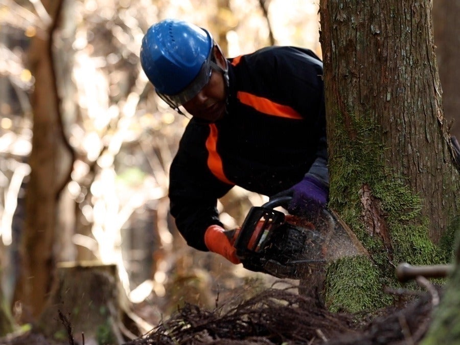 植林した木の成長に伴って、混みすぎた林の立木を間引いて伐採します。間伐することで、林内に適度に光が射し込み、下草などの下層植生が育とことで、水の保水能力(水質保全含む)や土砂流出防止機能が高くなるのです。植林された木1本1本の幹も太くなり、風や雪にも折れにくく強い山になります。 また、下草類が豊かになることで、多様な生物の生息を維持できるようになります。