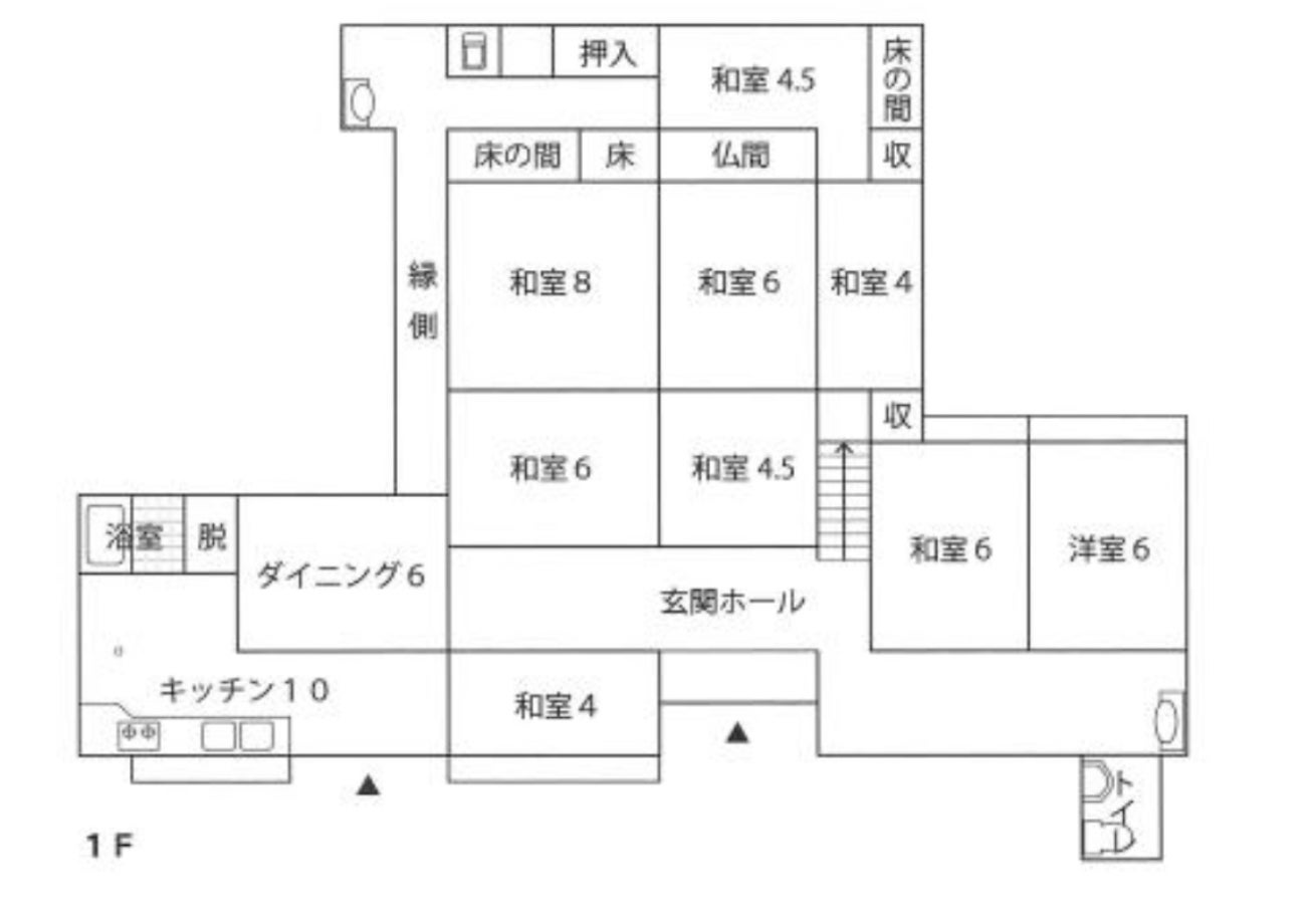 8畳6畳6畳4畳半の田の字型のお座敷