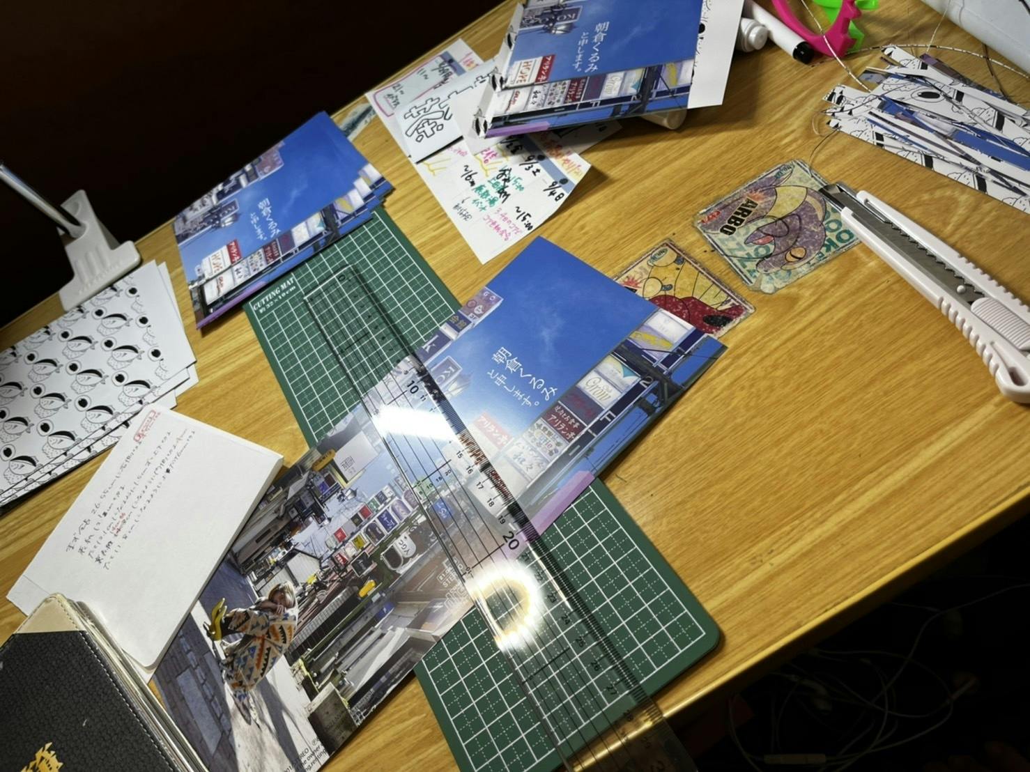 2022/11/07 14:37Twitterには書きましたが、CDジャケットが届きました!これをひとつひとつ手作業でCDケースのサイズに裁断していきます。果てしないミリ作業…ポコチャの配信で歌いながら作業してたりするので、ぜひ見に来てみてください♪ もっと見る