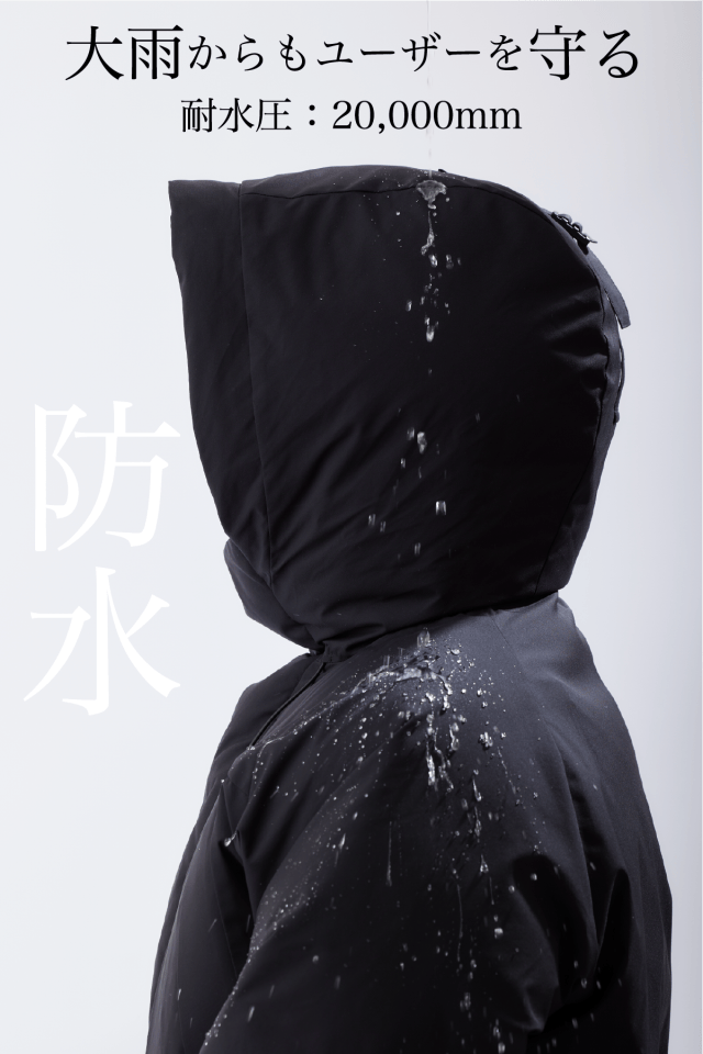 嵐にも耐えられるとされている耐水圧20,000mmのハイスペックファブリックです。