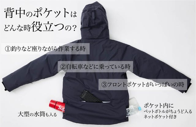 また前述の通りベンチレーションを解放することで、ダウンを脱ぐことなく内部の熱気を効率良く外に放出可能です。