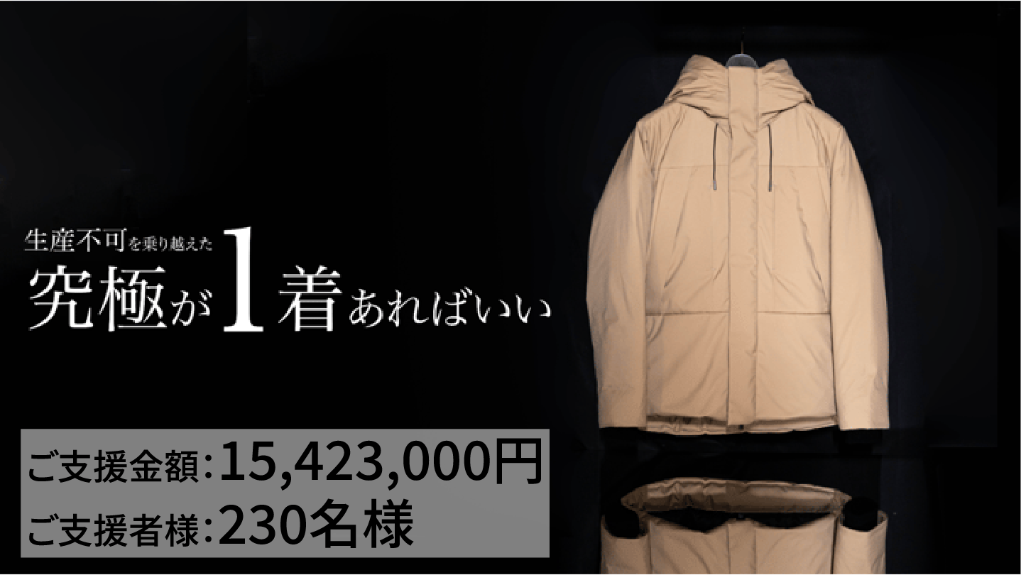 令和の虎でも絶賛していただいたクラウドファンディングNo.1ダウンジャケット!!