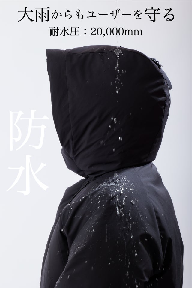 ダウンジャケットとしての基本スペックである保温性、防水、透湿性(蒸れにくさ)、軽量性などの機能性も最高を目指し5年の研究開発期間をかけました。
