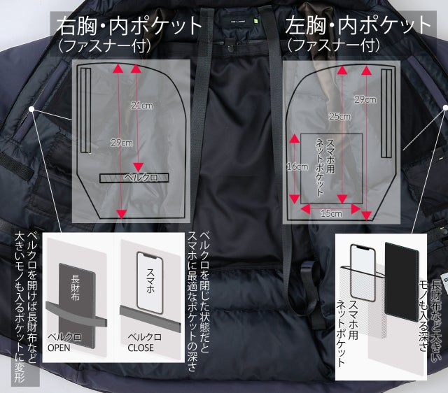 使用頻度の高い胸の内ポケットもこだわり抜きました!