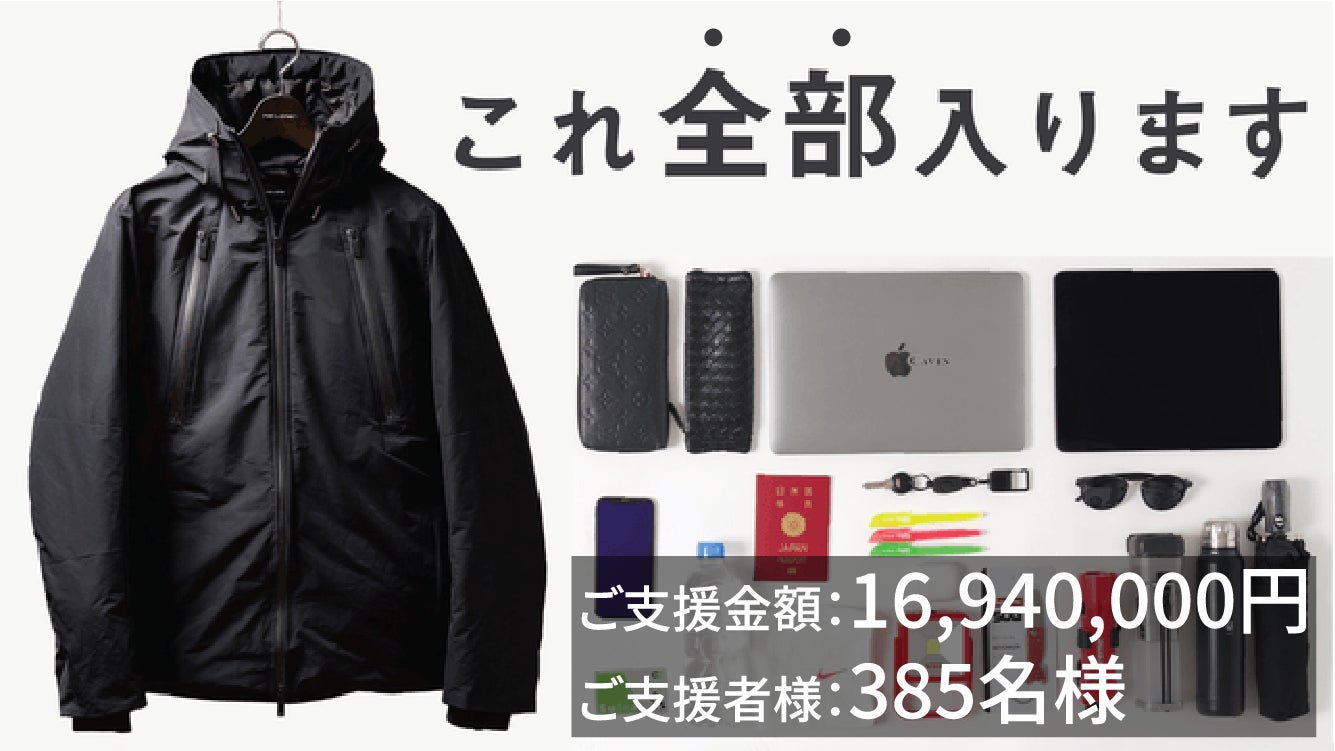 "ダウンジャケット"としてMakuake史上NO.1である初代手ぶらダウンジャケット