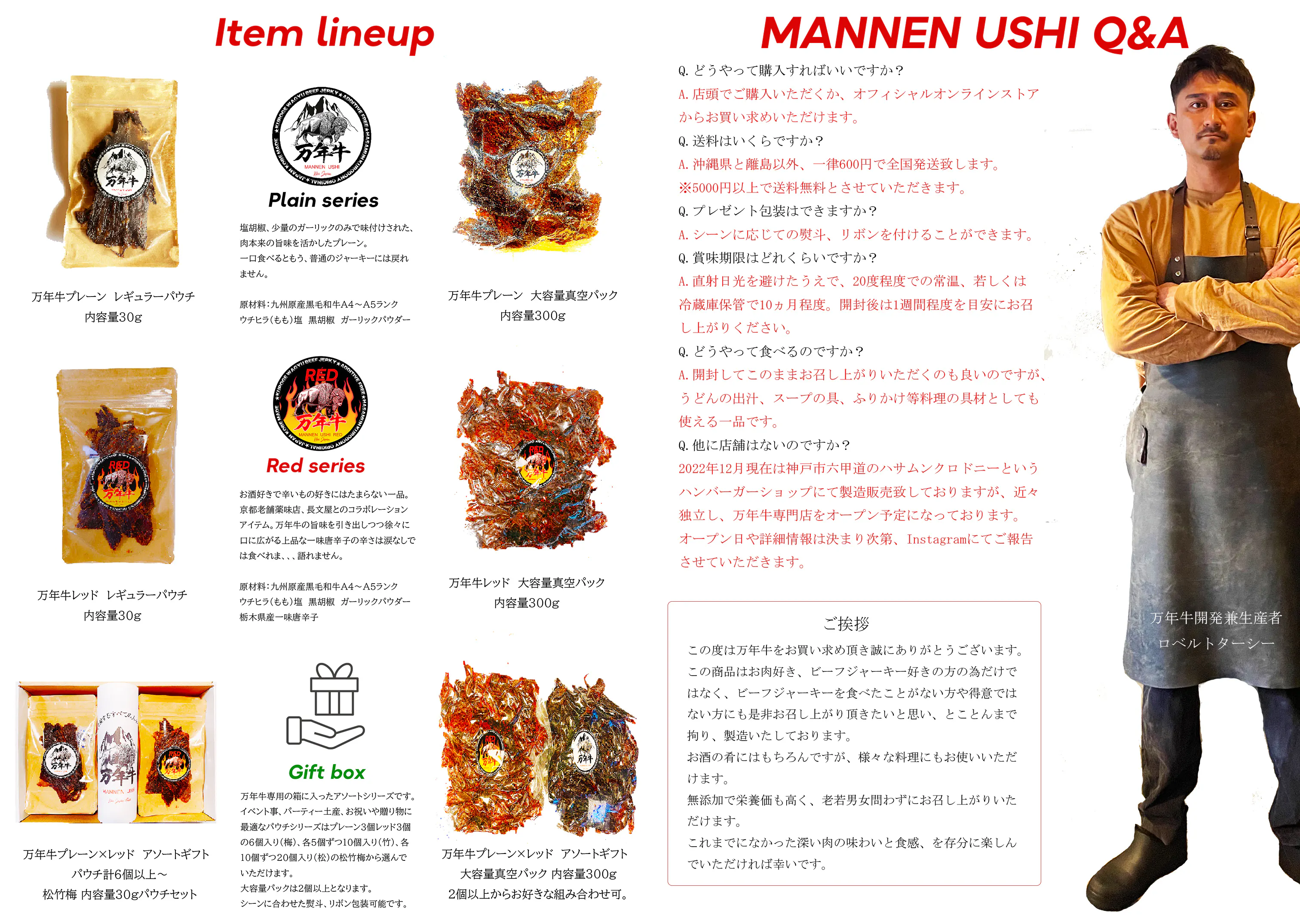 今回は新しいRED味を一番にお楽しみいただきたいとの思いから、3個・6個・10個セット、プレーンとのアソートセット、そして前回も好評だった大容量300gパックをご用意しました。
