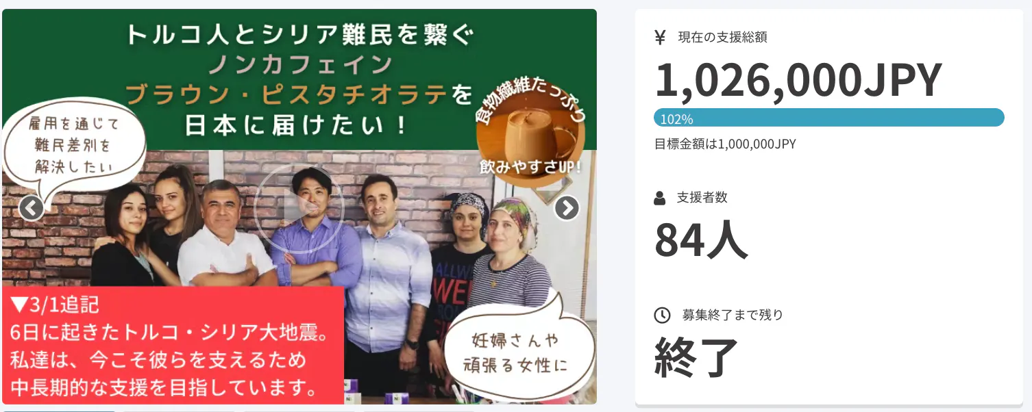 ブラウン・ピスタチオラテ、シリアのお母さん達が作る手製の製品、を通じて