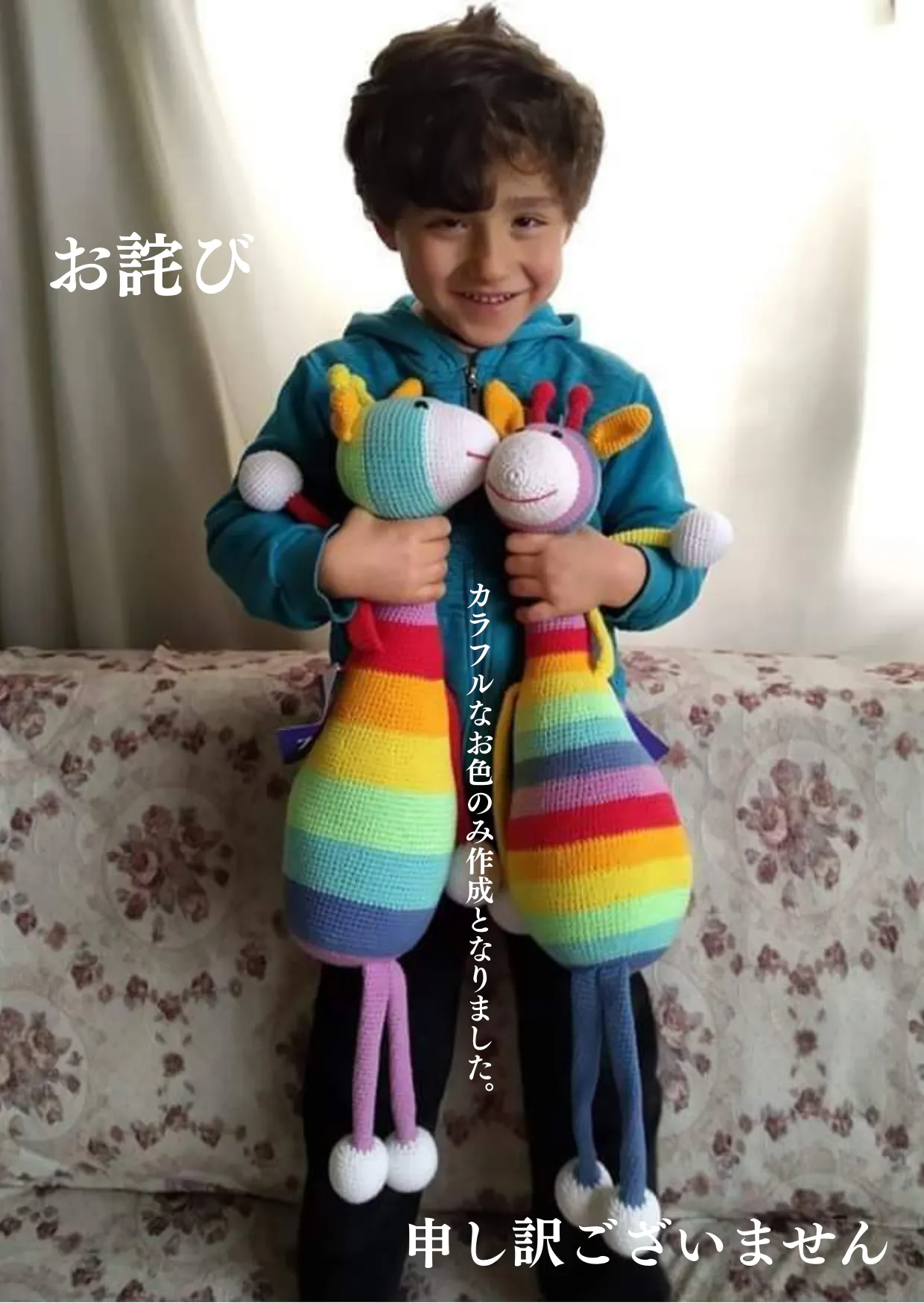 制作コストの関係で、カラフルなキリンのぬいぐるみのみを対象とさせていただくことになりました。