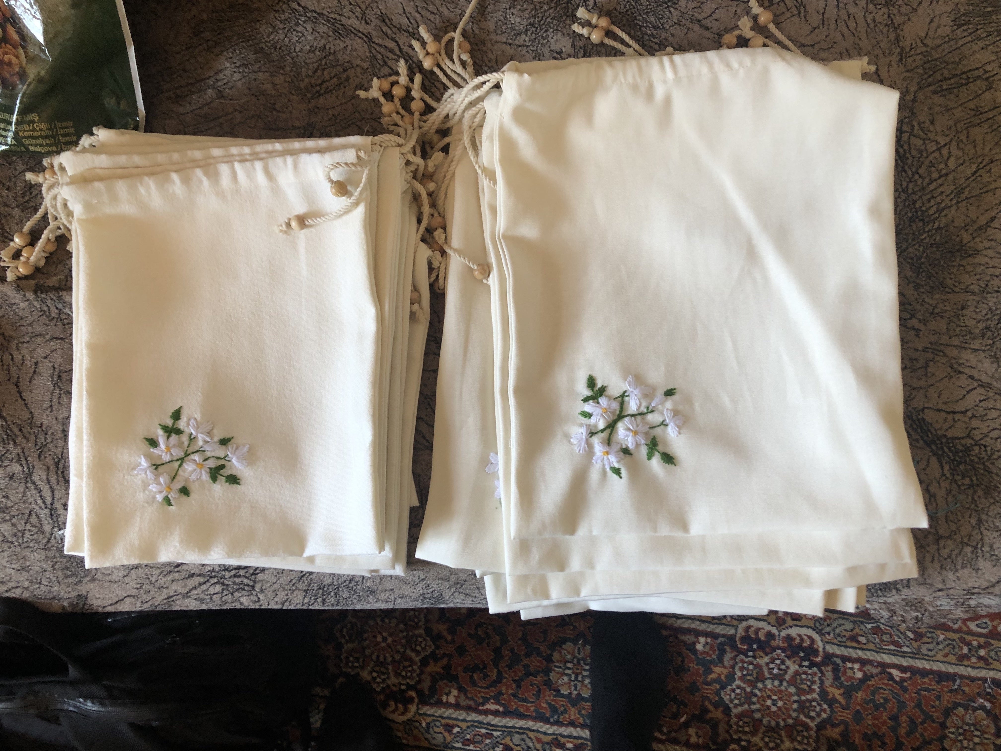 とても素敵なジャスミンの刺繍と、手製の巾着袋。