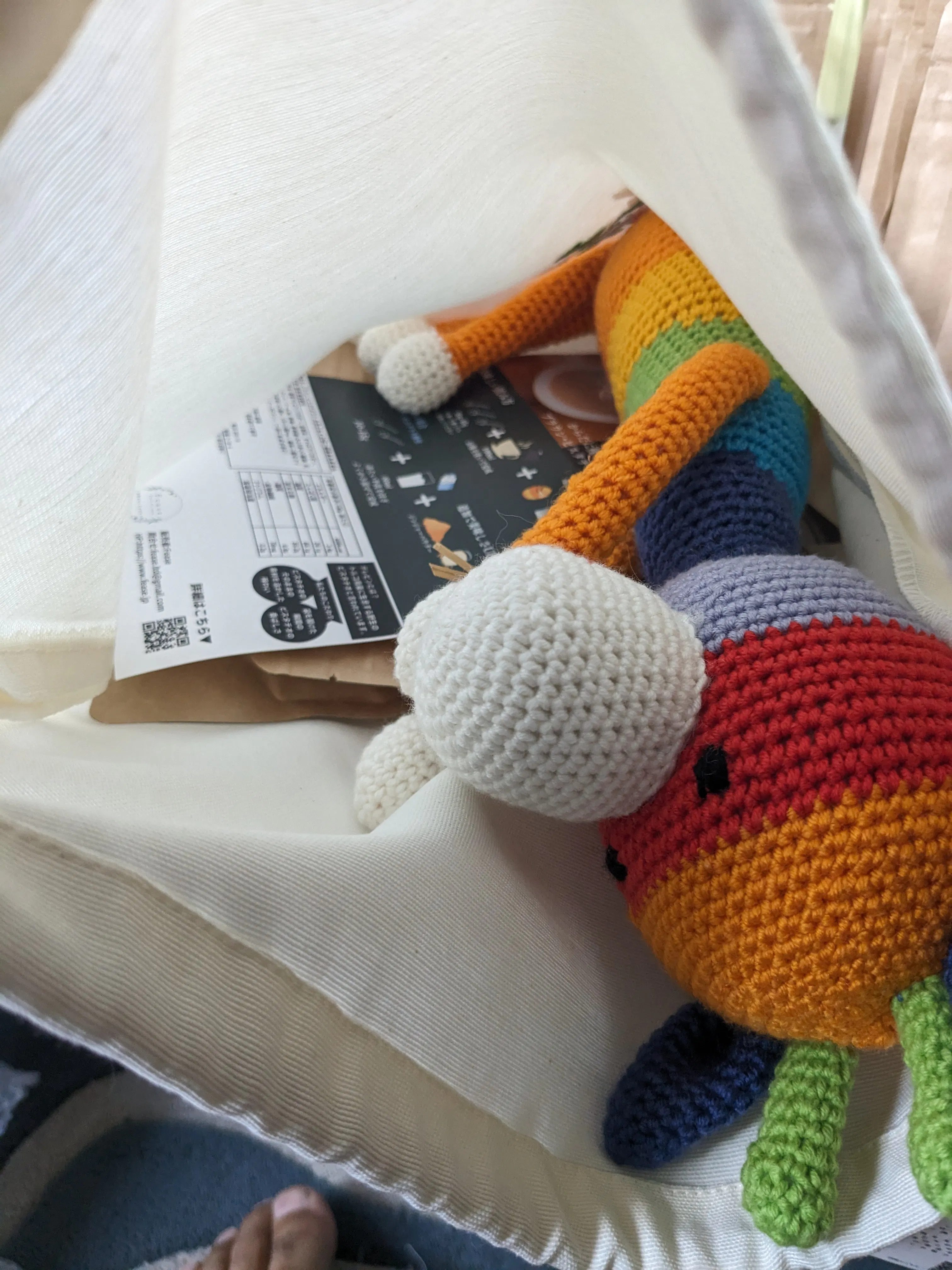 シリアのお母さんが作成したギフトバック、ぬいぐるみ、ピスタチオラテ。