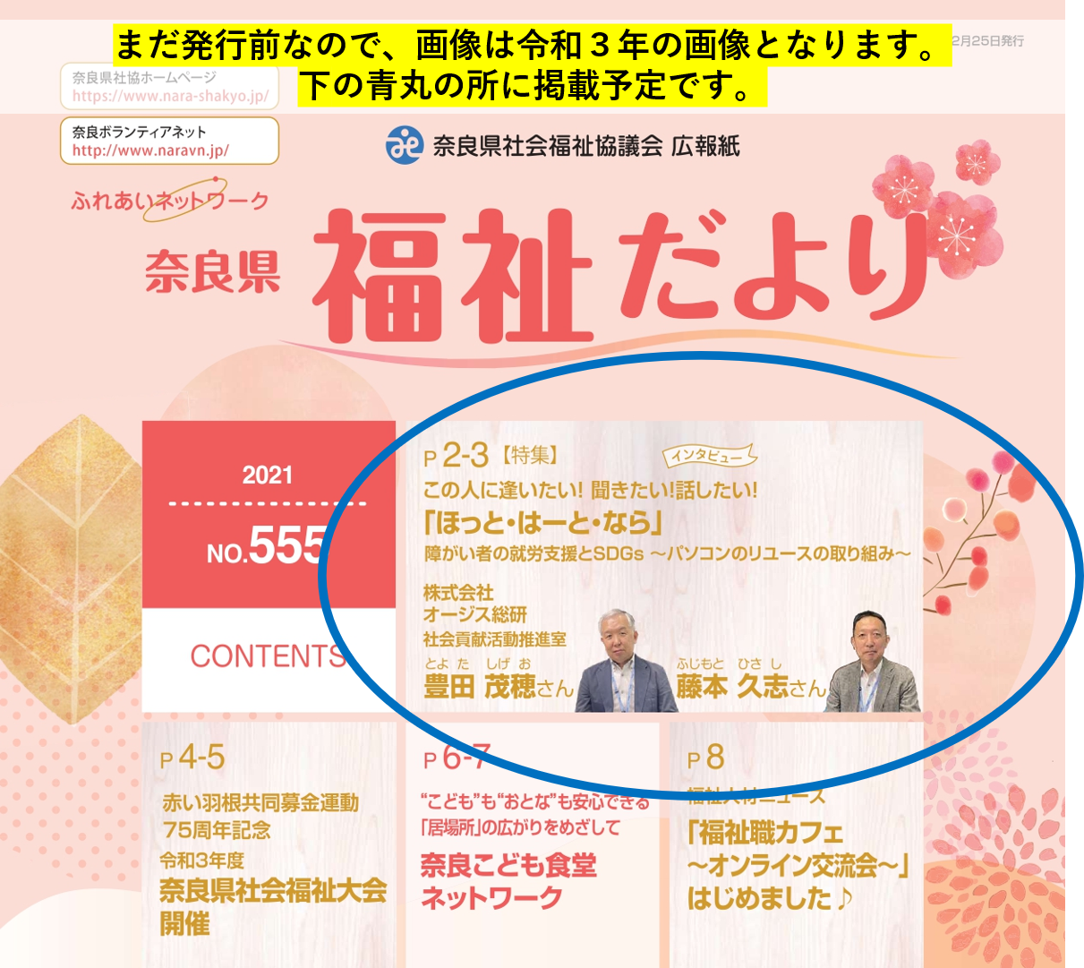 最終日となり、本当に沢山の方にご支援を頂き感謝の気持ちでいっぱいです。奈良社協広報に活動をインタビューして頂きました。