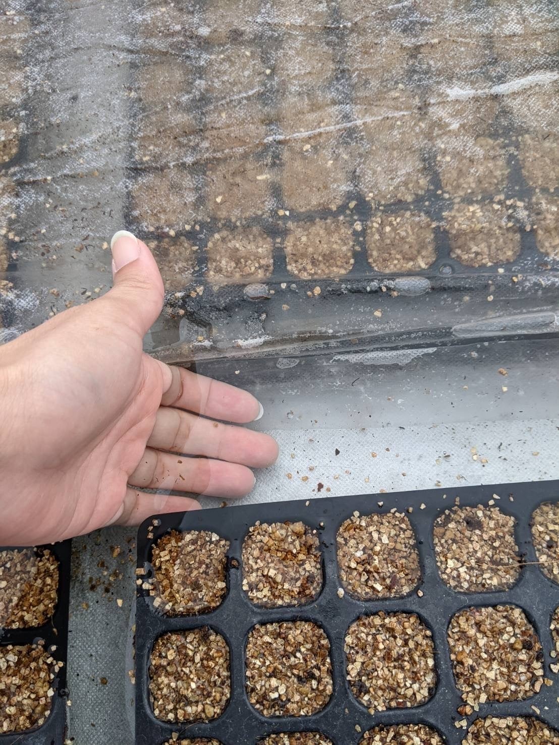 2022/10/07 15:03昨日完成した「底面灌水※自動灌水(仮)」ですが、やはりトラブル発生です。。。底に敷いていた不織布が水を含んでくれず、給水された水が窪みに溜まってセルトレイごと水没してしまいました。。。「国分種苗」さんにも知恵をお借りしながら、なんとか形にすることができました!(みんなで新品の不織布をもみほぐしています)主婦の方はさすが布の特性を熟知してらっしゃるので、不織布をガンガン揉みほぐしていました。吸水性も改善されて、なかなかいい感じに仕上がったんじゃないかと思います。これでガンガン苗作りが捗りますねー! もっと見る