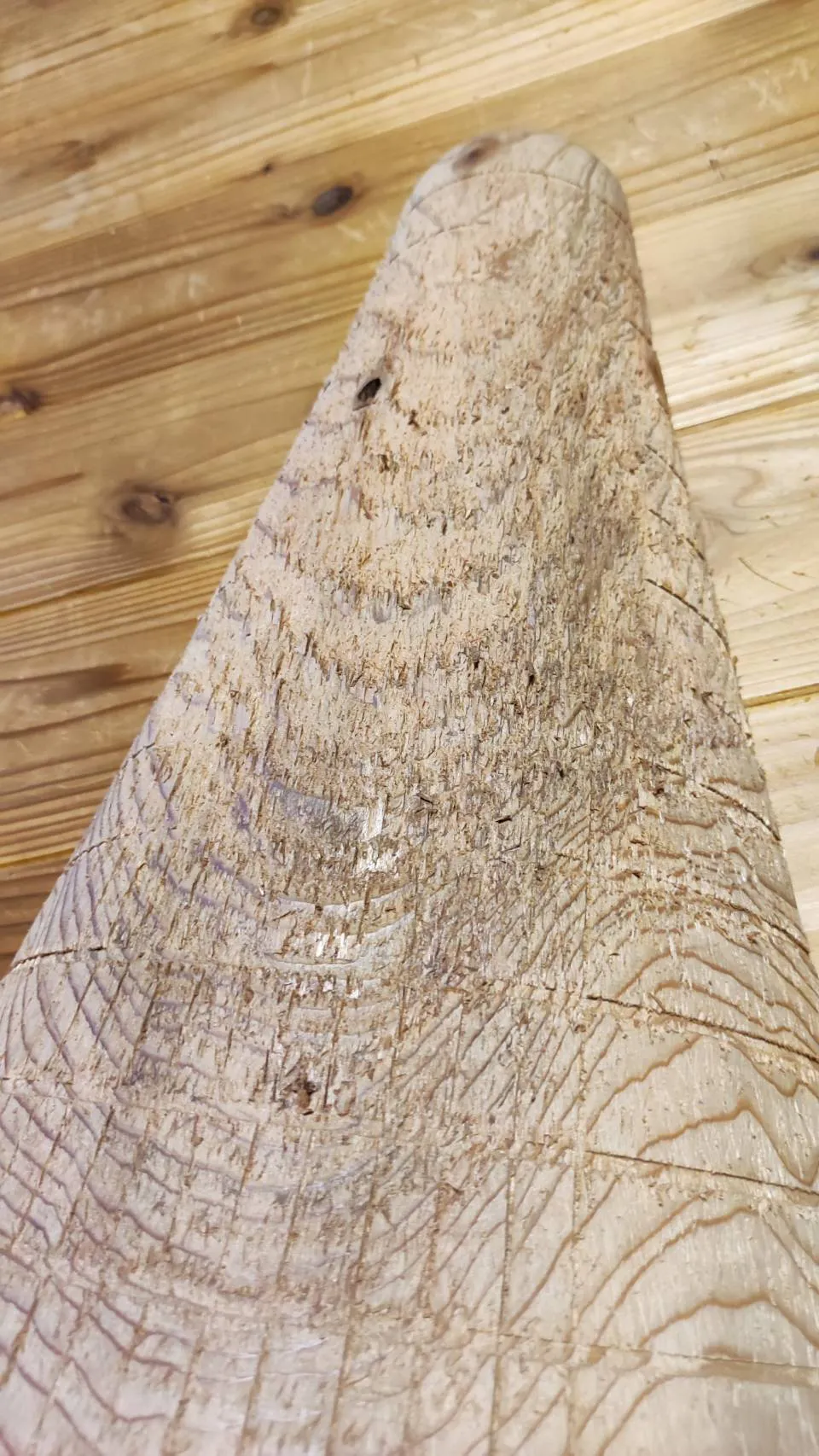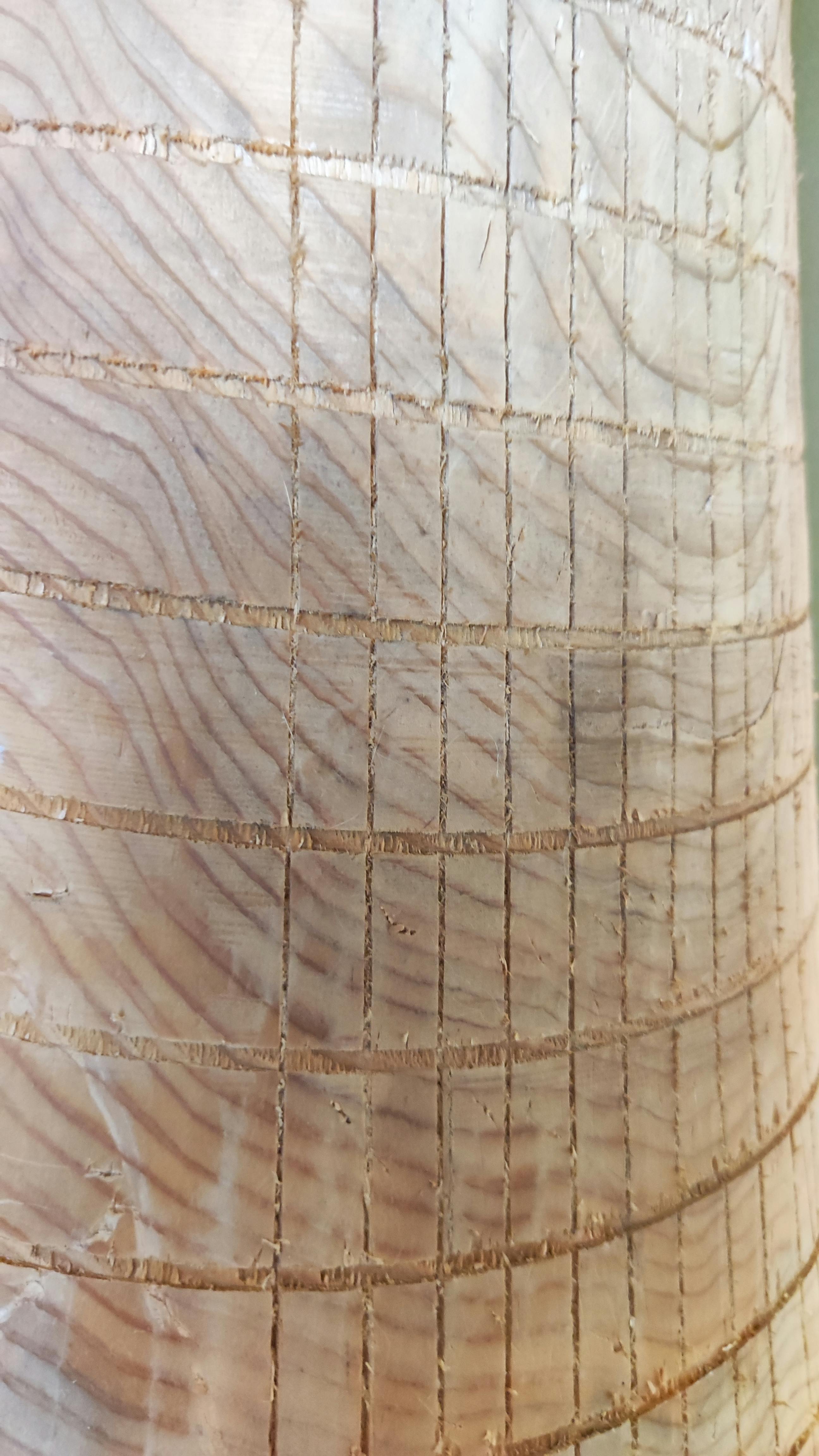 爪とぎの加工には大型の木工旋盤が必要で