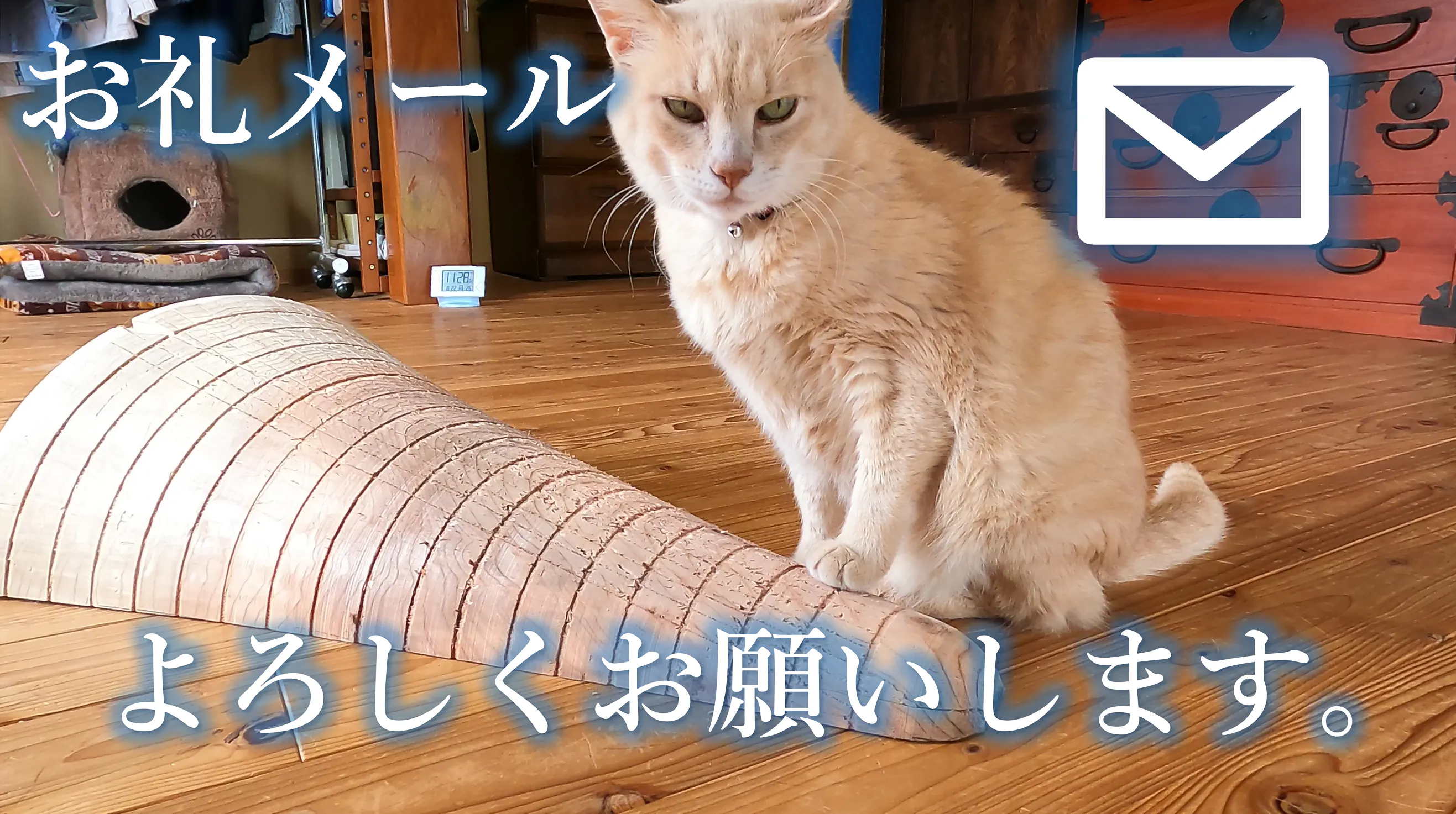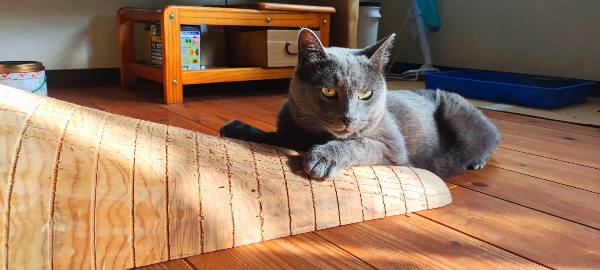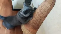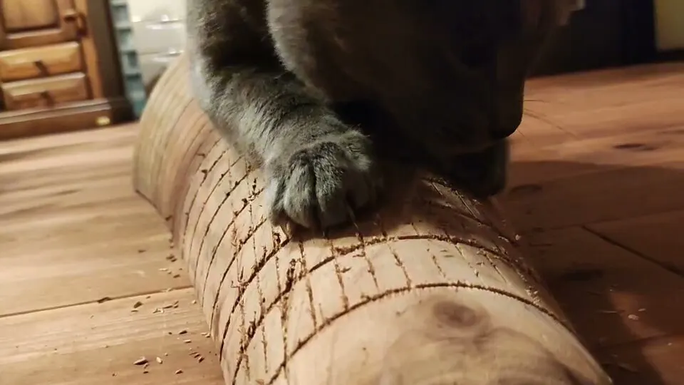 猫ちゃんが一生をかけて木を削りながら