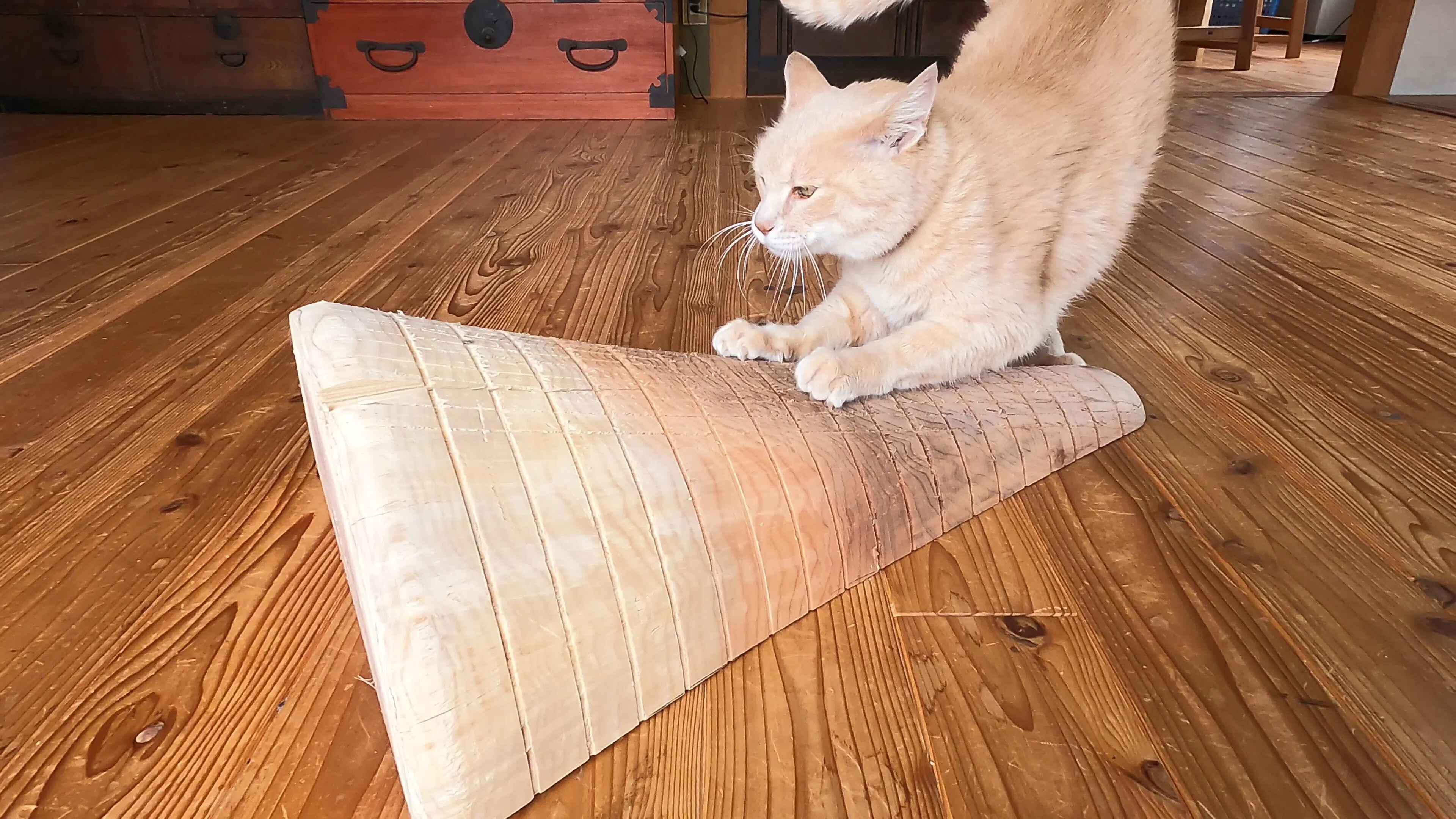 削れた爪とぎが個性を出し